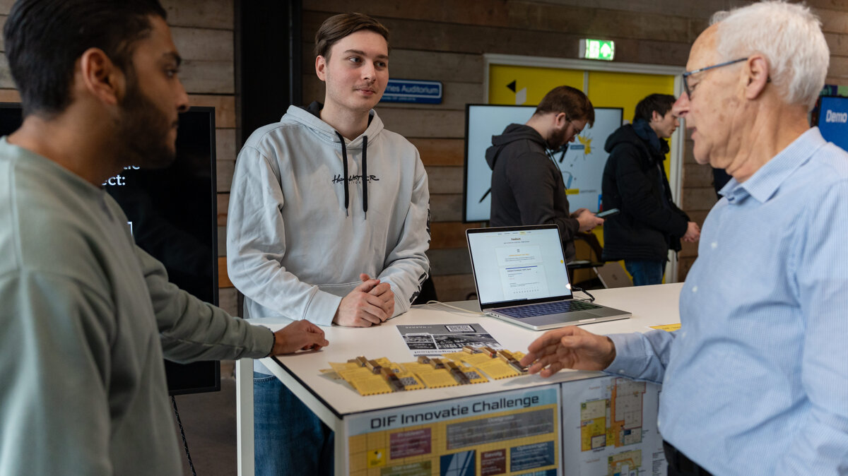 Op vrijdag 27 maart van 13:00 – 15:00 presenteren de studententeams hun eerste ideeën en prototypes tijdens de Challengemarkt in de Dutch Innovation Factory. In korte pitches van laten zij zien aan welke oplossingen ze werken en hoe technologie wordt ingezet voor deze vraagstukken uit de praktijk.