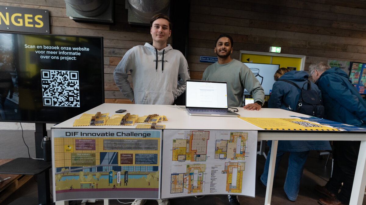 Hoe laat je zien wat er allemaal gebeurt in een plek als de Dutch Innovation Factory? Die vraag stond centraal in de DIF Innovatie Challenge, in opdracht van programmamanager DIF Tessa Renkers en communitymanager Bernard Groen. Studenten ontdekten al snel dat het probleem niet zozeer was dat de DIF niet innovatief oogt, maar dat samenwerking tussen bedrijven, onderwijs en partners in de DIF onvoldoende zichtbaar was.