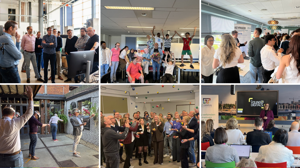 - Digiwerkplaats Rijnmond Hackathon: studenten onderzochten websites en social media van mkb’ers, leverden quickscans en verbeteradviezen. Ondernemers volgden tegelijk een AI-workshop vol concrete toepassingen.